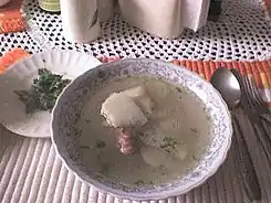 ![]() Caldo de costilla con papas y hojitas de cilantro. | ||