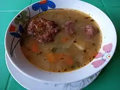 Se prepara un caldo con carne y hueso de res, especias, cebolla, ajo, y verduras como zanahoria, cebollas y papa. Las torrejas de preparan aparte con huevo y carne picada, y se añaden al caldo al momento de servirse.[1]