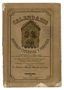 En este contexto, en 1856 Antoni Maria Morera Colom (Tárrega, 1819-Barcelona, 1893), que era perito mercantil, maestro de primera enseñanza, “revisor” de libros y perito y liquidador de los Tribunales de Comercio de Barcelona, y que tenía sólidos conocimientos de astronomía y cronología, edita el Calendario Histórico, Universal y Perpetuo, que más que un calendario era un tratado que enseñaba la manera de hacer calendarios. Se vendía por toda España y Canarias, y también en diferentes países iberoamericanos como México, Perú, Puerto Rico, Uruguay, Venezuela y Chile, así como en Cuba y Haití. A continuación publicó dos calendarios más: el Calendario Religioso Industrial y Mercantil para 15 años, y un calendario en forma de mapa de grandes dimensiones que tuvo gran aceptación.