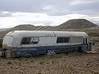 - Restos de colectivo que unía Diadema con Comodoro. Nótese la geografía accidentada del barrio.