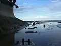 - Restos del muelle hoy destruido por el abandono y por la acción marina.