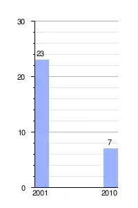 Gráfica de evolución demográfica de Caleta Olivares entre 2001 y 2010 |