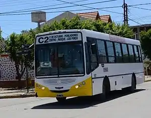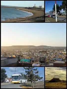 ![]() Desde arriba, de izquierda a derecha: Balneario Caleta Olivia y calle céntrica; vista al norte, Autobuses Caleta Olivia, y Cerro Pan de Azúcar.