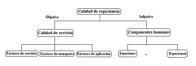 La calidad de experiencia (QoE, Quality of Experience) se define[1] como la aceptabilidad global de una aplicación o servicio, tal y como se percibe subjetivamente por el usuario final. Incluye la totalidad de efectos del sistema extremo a extremo (cliente, terminal, red, servicios de infraestructura…) y puede verse influenciada por las expectativas de los usuarios y el contexto. Esto tiene como consecuencia que la QoE se mida subjetivamente y pueda diferir de un usuario a otro. La calidad de la experiencia (QoE) para contenidos multimedia como IPTV también se encuentra definida por la organización de estándares de la industria ETSI TISPAN (European Telecommunications Standards Institute Telecommunications and Internet converged Services and Protocols for Advanced Networking) en su norma TR 102 479,[2] como la experiencia que tiene el usuario al momento de hacer uso de servicios de comunicaciones o de aplicaciones proporcionadas por los CSP (Communication Service Provider), describiendo cómo le parece el servicio y si este satisface sus expectativas. La anterior definición deja ver un poco la naturaleza subjetiva de la QoE ya que en ella se tienen en cuenta muchos factores diferentes a los relacionados con la QoS, algunos de estos son; el precio del servicio, el ambiente de visualización, nivel de estrés de los usuarios entre otros.[3]