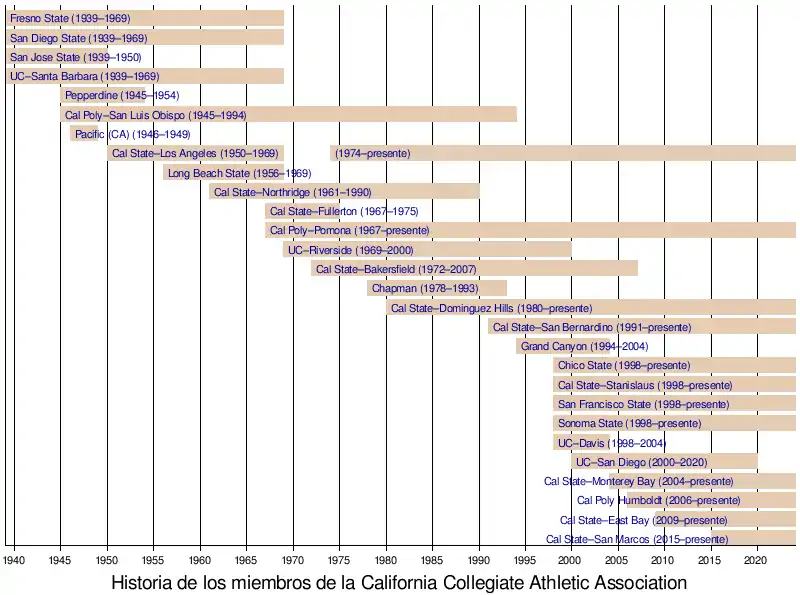 - California State–Los Angeles — dejó la CCAA in 1969, y regresó en 1974.
