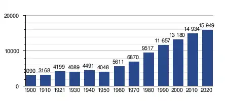 Gráfica de evolución demográfica de Calkiní entre 1900 y 2020 |