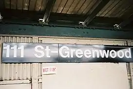 La Calle 111–Greenwood (conocida como la Calle 111) es una estación en la línea de la Calle Fulton del Metro de Nueva York de la división B del Independent Subway System. La estación se encuentra localizada en Ozone Park, Brooklyn entre la Calle 111 y la Avenida Liberty. La estación es servida en varios horarios por los trenes del Servicio .