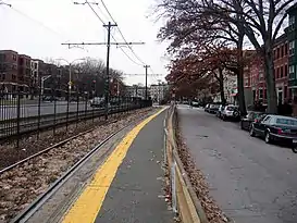 La estación Calle Allston cuenta con 2 plataformas laterales y 2 vías.