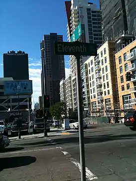 La Calle B por ser una de las calles que atraviesa el Centro de San Diego, pasa por numerosas zonas de restaurantes, tiendas en los principales barrios de la ciudad como Core, Columbia, Golden Hill y South Park en el extremo este.
