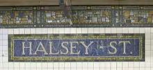 La Calle Halsey es una estación en la línea Canarsie del Metro de la Ciudad de Nueva York de la división B del Brooklyn–Manhattan Transit Corporation. La estación se encuentra localizada entre los límites de Brooklyn y Queens entre la Calle Halsey y la Avenida Wyckoff. La estación es servida en varios horarios por los trenes del Servicio .
