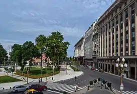 Partiendo del centro de Buenos Aires (barrio de Monserrat), la calle comienza a un lado del Parque Colón, en donde la Avenida Paseo Colón continúa en la Avenida La Rábida. Esta primera cuadra conserva su empedrado y las vías de tranvía, y tiene una notable pendiente, ya que originalmente hasta aquí llegaba la ribera del Río de la Plata, alejada producto de múltiples rellenos. Del lado sur está el Palacio de Hacienda, sede del Ministerio de Economía desde 1939. En los primeros 200 m cuenta con recovas. En el lado oeste se encuentra la Casa Rosada, sede del Poder Ejecutivo Nacional. En 1938, gracias a la demolición de parte de la Casa de Gobierno, esta cuadra fue ensanchada.