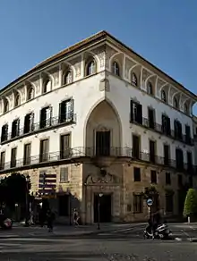 Edificio construido sobre la antigua Puerta de Sevilla, derribaba en el s. XIX. Ejerce de entrada en el casco histórico a través de la calle Tornería. Es conocido por su portada ochavada y los esgrafiados del ático. Su autor, el arquitecto madrileño Luis Gutiérrez Soto, definió el proyecto en 1940.