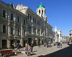 La calle Nikólskaya y la vecina Tretyakovsky Proezd son el centro del distrito comercial de lujo tradicional de Moscú. La calle fue peatonalizada en agosto de 2013.[3]