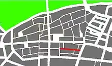 La calle se encuentra junto al centro histórico de la ciudad, el Paseo del Espolón. El acceso a la misma se realiza desde las calles Muro del Carmen por el este, Marqués de Vallejo por el oeste, la Travesía de San Juan por el norte y la calle Ollerías por el sur.