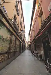 Ya desde el primer cuarto del siglo XX es calle peatonal —«cerrada al tránsito rodado»— y que en aquella época tuvo dos espejos "de cuerpo entero, cóncavo el uno y convexo el otro", en los que los paseantes, chicos y grandes, se miraban divertidos o asustados de sus deformes cuerpos, evocadores de "Quijotes o Sanchos".[3]