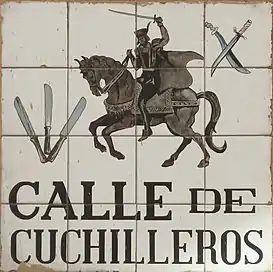 La calle de Cuchilleros es una vía pública de la ciudad española de Madrid, situada en el barrio de Embajadores del distrito Centro, que corre, en dirección norte-sur, desde la cava de San Miguel,[lower-alpha 1] junto al arco de Cuchilleros (al pie de la plaza Mayor), hasta la plaza de Puerta Cerrada.[1] Forma parte del foso o cava de Puerta Cerrada que corría al pie de la muralla.[2] Recibe el nombre del gremio de cuchilleros en ella establecidos desde el siglo xvii.