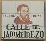 En el plano de Teixeira de 1656 aparece rotulada como «Postigo de San Martín», y con el actual en el plano de Espinosa (1769).[1] En su origen fue una castiza vía entre la calle de la Montera y la de Tudescos, recorrido que tras la construcción de la Gran Vía quedó reducido a su último tramo.[2] En el trazado desaparecido, a la altura de la actual Casa Matesanz), tuvo su casa –al parecer obra de Juan de Herrera– el propio Jacome da Trezzo por el que luego se renombraría así la calle.[lower-alpha 1][3][4]