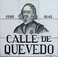 La calle de Quevedo es una pequeña vía pública de la ciudad española de Madrid, situada en el barrio de Cortes, distrito Centro, que une la calle de Cervantes con la de Lope de Vega,[1] configurando uno de los grandes enclaves literarios[2] del Madrid de los Austrias, dentro del Barrio de las Letras. Antes se llamó calle del Niño (y también del Buen Pastor),[3] hasta que en 1848 tomó el nombre del maestro del Conceptismo del Siglo de Oro Español, que tuvo casa en propiedad en el número 9.[4] En su número 5 se documenta el nacimiento del nobel de literatura José Echegaray.[3]