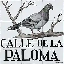 La calle de la Paloma es una pequeña vía del barrio de La Latina en el distrito Centro de Madrid.[1] Su antigüedad, asociada a cierto capricho popular, ha hecho que, a pesar de su escaso tamaño,[lower-alpha 1][2] le haya cambiado el nombre a la vieja Virgen de la Soledad (1565), por el de Virgen de la Paloma. También desplazó el nombre de la iglesia de San Pedro el Real por el de la iglesia de la Paloma, que preside la calle y la plaza con ese mismo nombre.[3]