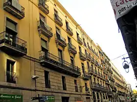 - Edificio de viviendas, en el número 24, edificación de origen medieval en la esquina con la calle Montcada.