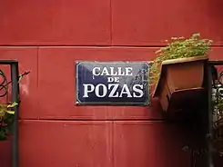 La calle de las Pozas[lower-alpha 1] de Madrid es una estrecha vía urbana del distrito de Universidad (015), que asciende en dirección sur-norte desde la calle del Pez hasta la calle de Espíritu Santo, paralela a la Carrera de San Bernardo.[1] El nombre procede de la existencia de «cinco pozas» que hubo en el huerto del cura de Colmenar,[2] Diego Enríquez.[1][3][4]