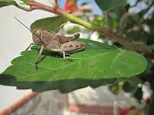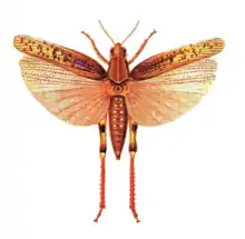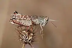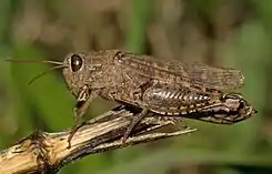 El saltamontes de campo o langosta italiana (Calliptamus italicus) es una especie de langosta del género Calliptamus perteneciente a la subfamilia Calliptaminae.[2] Presenta un comportamiento gregario clásico con polimorfismo de fase en el hacinamiento, es decir, en poblaciones de alta densidad la morfología, comportamiento y la fisiología de la especie cambian.[3] Cuando forman enjambres muy numerosos dadas ciertas condiciones, son consideradas plagas en cultivos de pastos, cereales y algodón. Las larvas y adultos son comestibles.