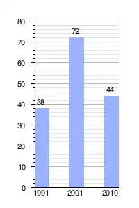 Gráfica de evolución demográfica de Calmayo entre 1991 y 2010 |