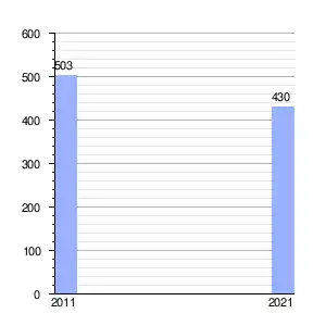 Gráfica de evolución demográfica de Calvão e Soutelinho da Raia entre 2011 y 2021 |