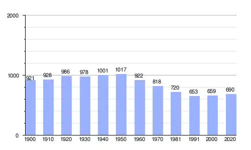 Gráfica de evolución demográfica de Calzada de Valdunciel entre 1900 y 2020 |