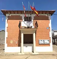 El edificio del ayuntamiento esta construido con ladrillos rojos se, tiene planta rectangular y no es muy grande. Recientemente ha sufrido reformas, en las cuáles se ha añadido una balconada blanca.