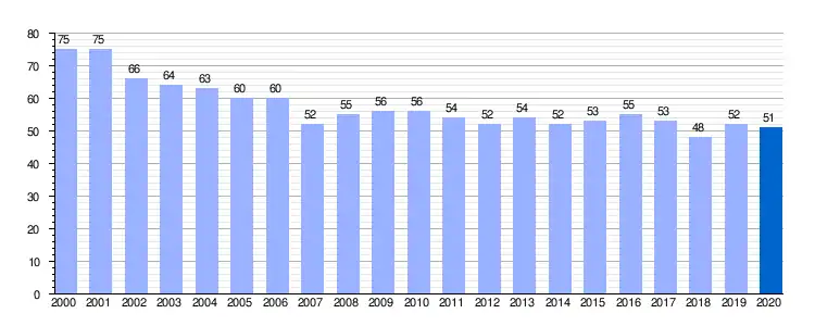 Gráfica de evolución demográfica de Calzadilla de la Cueza entre 2000 y 2020 |