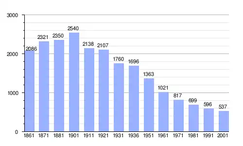 Gráfica de evolución demográfica de Camagna Monferrato entre 1861 y 2001 |