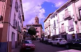 - Paisaje urbano de Camarena de la Sierra (Teruel), con detalle de la parroquial al fondo (2017).