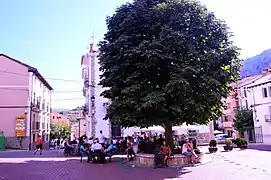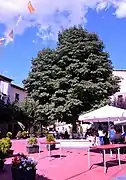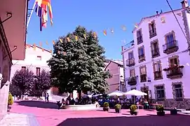 - Paisaje urbano de Camarena de la Sierra (Teruel), con detalle del castaño de indias (Aesculus hippocastanum) en la plaza Mayor (2017).