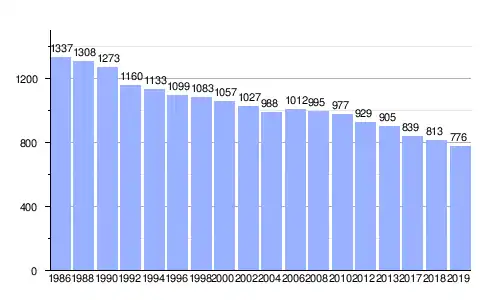 Evolución demográfica de Camarzana de Tera entre 1986 y 2019 |