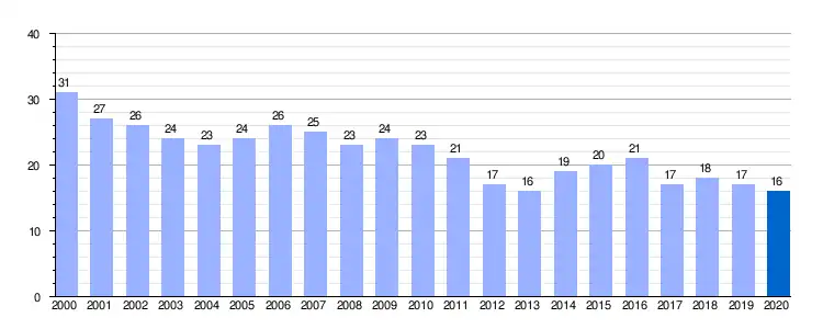 Gráfica de evolución demográfica de Camasobres entre 2000 y 2020 |