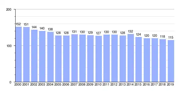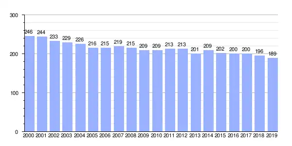 Gráfica de evolución demográfica de Camboño (parroquia) entre 2000 y 2019 |