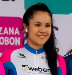 ![]() Camila Valbuena en la presentación del Weber Shimano Ladies Power en la Vuelta a Colombia Femenina 2017 | ||||||||||