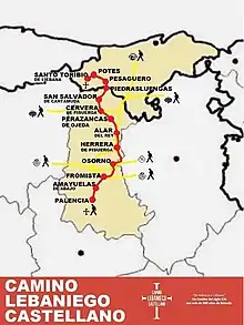 Camino Lebaniego Castellano es un itinerario cultural documentado ya a principios del siglo XVI entre la ciudad de Palencia y el Monasterio de Santo Toribio de Liébana en Cantabria. El Camino Lebaniego Castellano es una vía tradicional de peregrinación que ya aparece citada en 1455 y de la que queda constancia en el Libro de Actas de la catedral de Palencia.