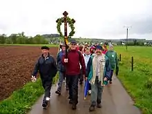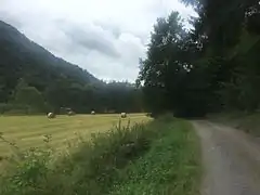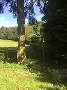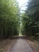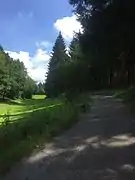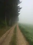 Tras el pequeño pantano, el itinerario gira hacia el sur, pasa por otras dos áreas naturales protegidas —Dreilägerbach y Wollerscheiderwald— para llegar al final del bosque, donde una hermandad de Matías tiene colocado un crucifijo.[47] El camino continúa entonces entre campos de cultivo y circunvala las poblaciones de Lammersdorf (2456 hab.) y Paustenbach (338 hab.).[47] Cerca de esta pequeña aldea es posible observar restos del Westwall, también conocido como «la línea Sigfrido».[47]