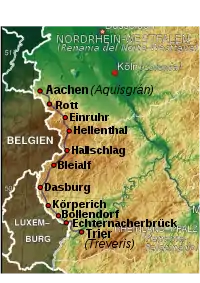 ![]() Aquisgrán; Rott; Einruhr; Hellenthal ![]() Hallschlag; Bleialf; Dasburg; Körperich; Bollendorf; Echternacherbrück; Wintersdorf; Tréveris | |