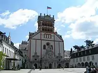 - «Kirchbau im 12. Jahrhundert und Beginn der Matthiasverehrung». Geschichte (en alemán). Benediktinerabtei St. Matthias. 2016. Consultado el 27 de septiembre de 2016.
