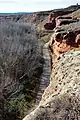 El naturalista alude al «camino de Ademúz», que lleva desde Torrebaja hasta la villa ademucense, cuyo trazado discurre por la ladera de la margen derecha del Turia, describiendo al paso las «lomas y cerros arcillosos» que conforman el panorama. Se trata de un paisaje del Mioceno, basado en arcillas, areniscas y conglomerados típico de la Era Secundaria. En su caminar descubre los daños causados por alguna riada reciente, «que arrancó arbustos, barrió sembrados, derribó el puente (se refiere al puente de Guerrero, con toda seguridad), y cargó con quanto se presentó a sus furias». Un espectáculo, por lo demás, familiar a los lugareños, periódicamente repetido durante siglos.[3]