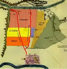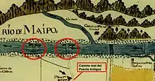 El camino real del Puente Antiguo del río Maipo a un camino colonial que se dirigía de la ciudad de Santiago de Chile a las tierras de Pirque (al sur del río Maipo).