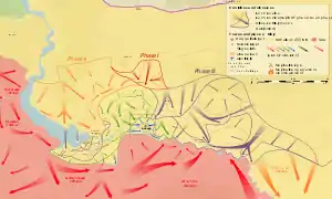 Daesh atacó a Jib Shair, intentando resistir los avances desde el norte, pero fueron repelidos al día siguiente, después de que las SDF capturaron seis villas.[110] Las SDF más tarde anunciaron que sus fuerzas del frente de Ayn Issa y del frente de Qadiriya se encontraron en Kurmanju, asediando una bolsa de 45 pueblos y 20 villas.[111][112] Siendo capturados al día siguiente, resultando en la liberación de 460 kilómetros cuadrados.[113] Otro pueblo fue capturado por las SDF el 13 de enero.[114][115] El 15 de enero, avanzaron a Suwaydiya Kabir, mientras que Daesh lanzó un contrataque contra Mahmudli y un pueblo cercano.[116][117] El ataque fue repelido después de varias horas de lucha.[118] Las SDF liberaron tres pueblos durante el día, mientras que Suwaydiya Saghirah fue recapturado.[119][120]
