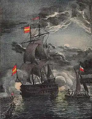 ![]() Captura de la Esmeralda en el Callao por Lord Thomas Cochrane en 1820. | ||||
