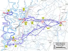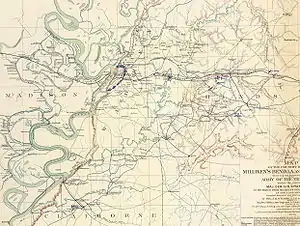 Grant y Sherman fueron rechazados por las fuerzas confederadas dirigidas por el general Earl Van Dorn, que consiguieron cortar las líneas de suministro de la Unión en Holly Springs el 20 de diciembre de 1862, lo que obligó a Grant a retirarse y más tarde también a Sherman, que, a pesar de las nuevas circunstancias desfavorables, quiso continuar y fue por ello detenido más tarde por los confederados en Chickasaw Bayou el 26 de diciembre de 1862.[5] Finalmente en la batalla que siguió al día siguiente y que duró hasta el día 29 Sherman fue derrotado a causa de ello y tuvo que retirarse.[6] Las fuerzas de la Unión tampoco tuvieron éxito en nuevos asaltos en enero de 1863 a causa del tiempo y por la solidez de las defensas alrededor de Vicksburg, lo que llevó a la cancelación de la ofensiva y la sustitución temporal de Sherman por John Alexander McClernand por haber hecho esa ofensiva imprudente.