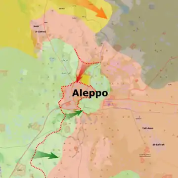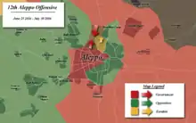 La campaña de verano en Alepo de 2016[50] empezó con una acción de guerra lanzada en las afueras del norte de Alepo a finales de junio de 2016, por el Ejército árabe sirio. El objetivo de la ofensiva era cortar la última línea de abastecimiento rebelde a Alepo.[51][52]