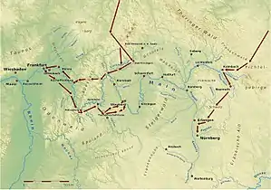 ![]() Recorrido del Ejército prusiano en la campaña del Meno | ||||