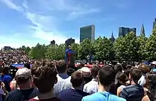 La campaña indicó que más de 5,500 personas asistieron, pero las estimaciones del tamaño de la multitud por parte de la prensa que asistió fueron menores.[55]